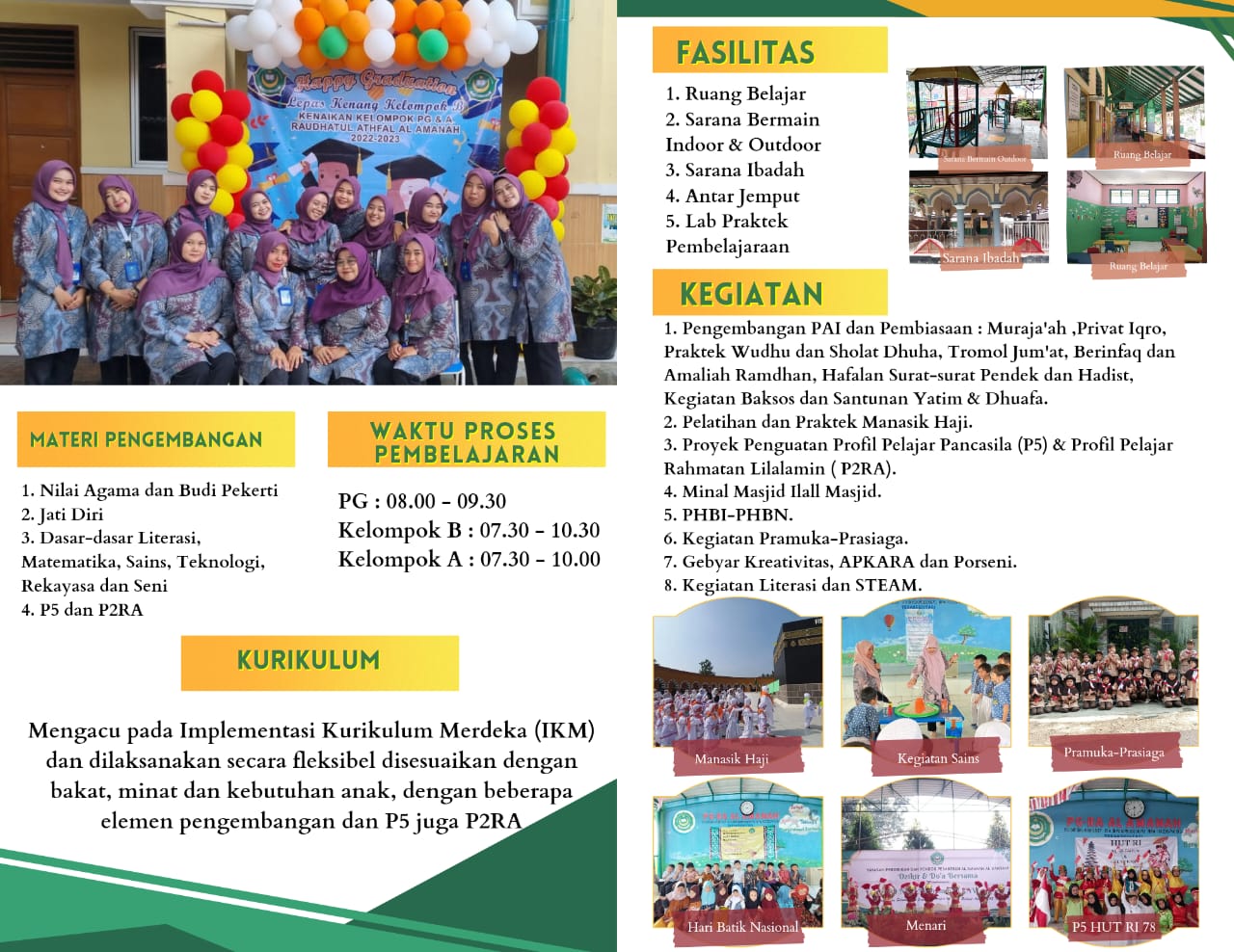 PG-RA, SDI, SMP, SMK, dan Pondok Pesantren Al Amanah