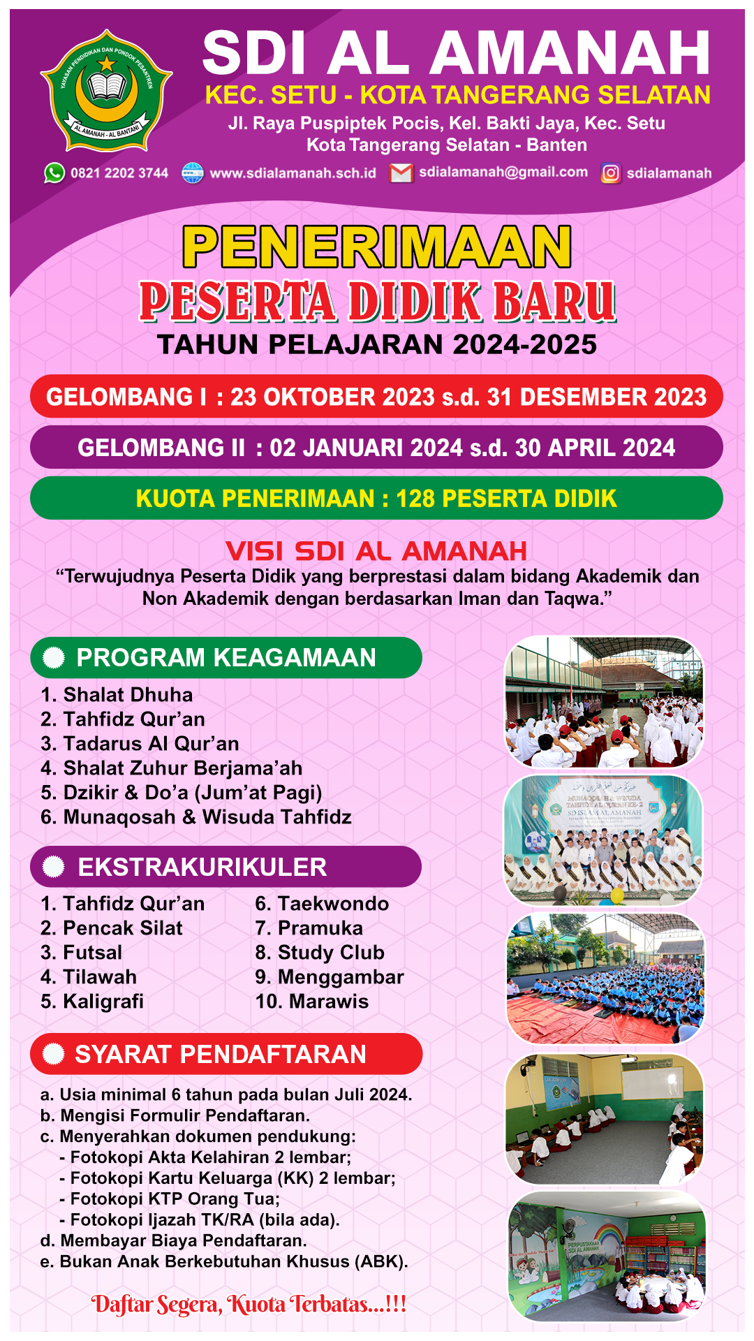 Berjenjang PG-RA, SD, SMP, SMK dan Pondok Pesantren untuk indonesia
